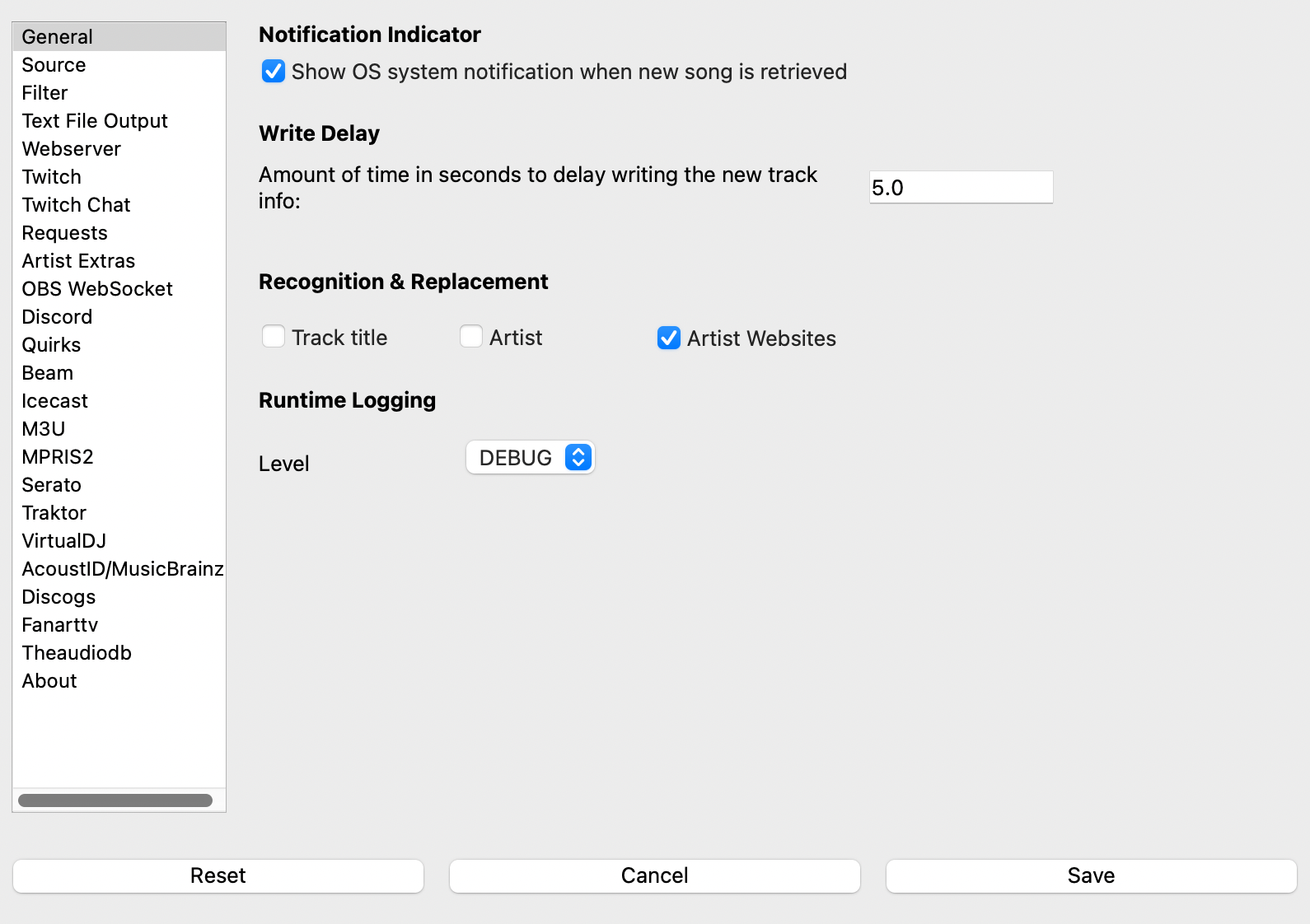 Recognition Replacement - By default, if a Music Recognition service is enabled, it will only supplement any missing information. These options forcibly replace title and artist from any enabled recognition services.