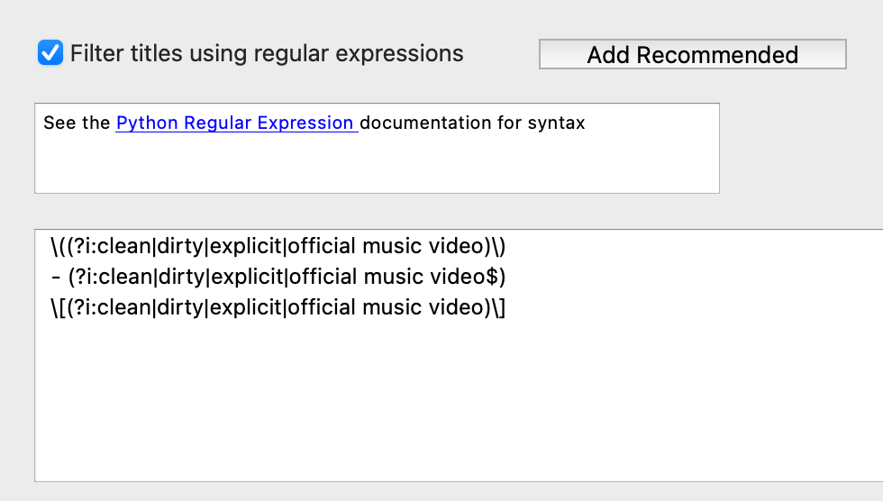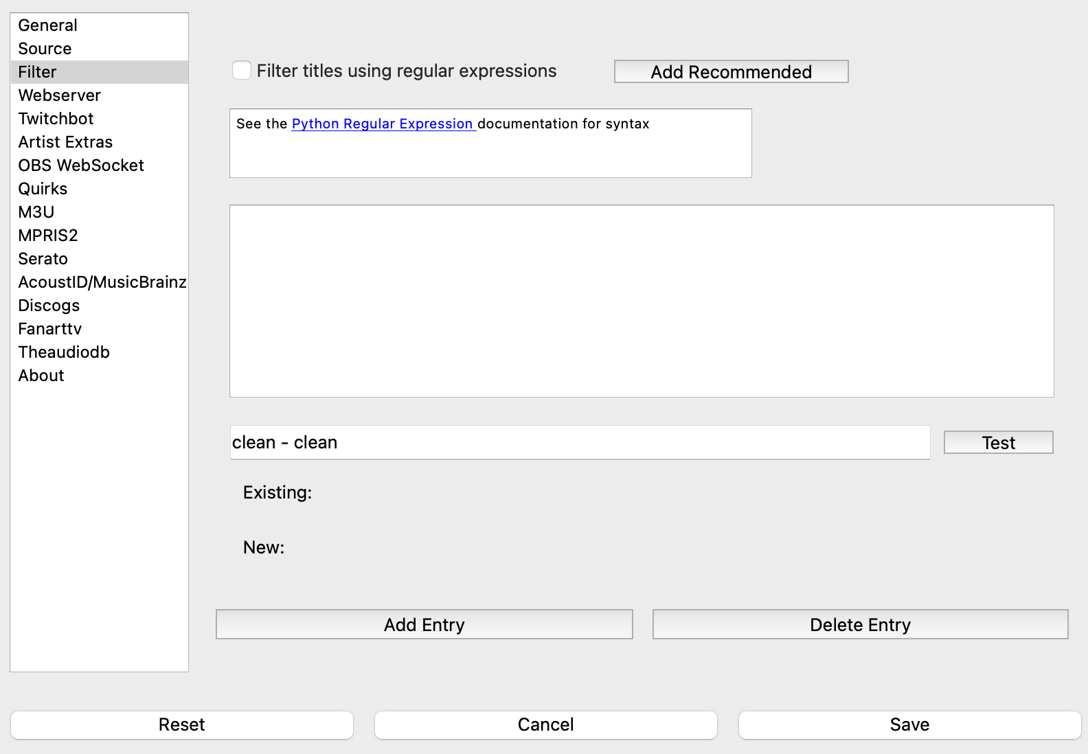 Some DJ Pools add extra identifiers to track titles. What's Now Playing has the ability to remove extra text from the title of a track using Python-style regular expressions .