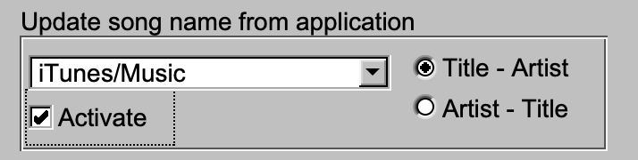 Under Stream, if using the 'Update song name from application', be sure to use 'Title - Artist' mode.