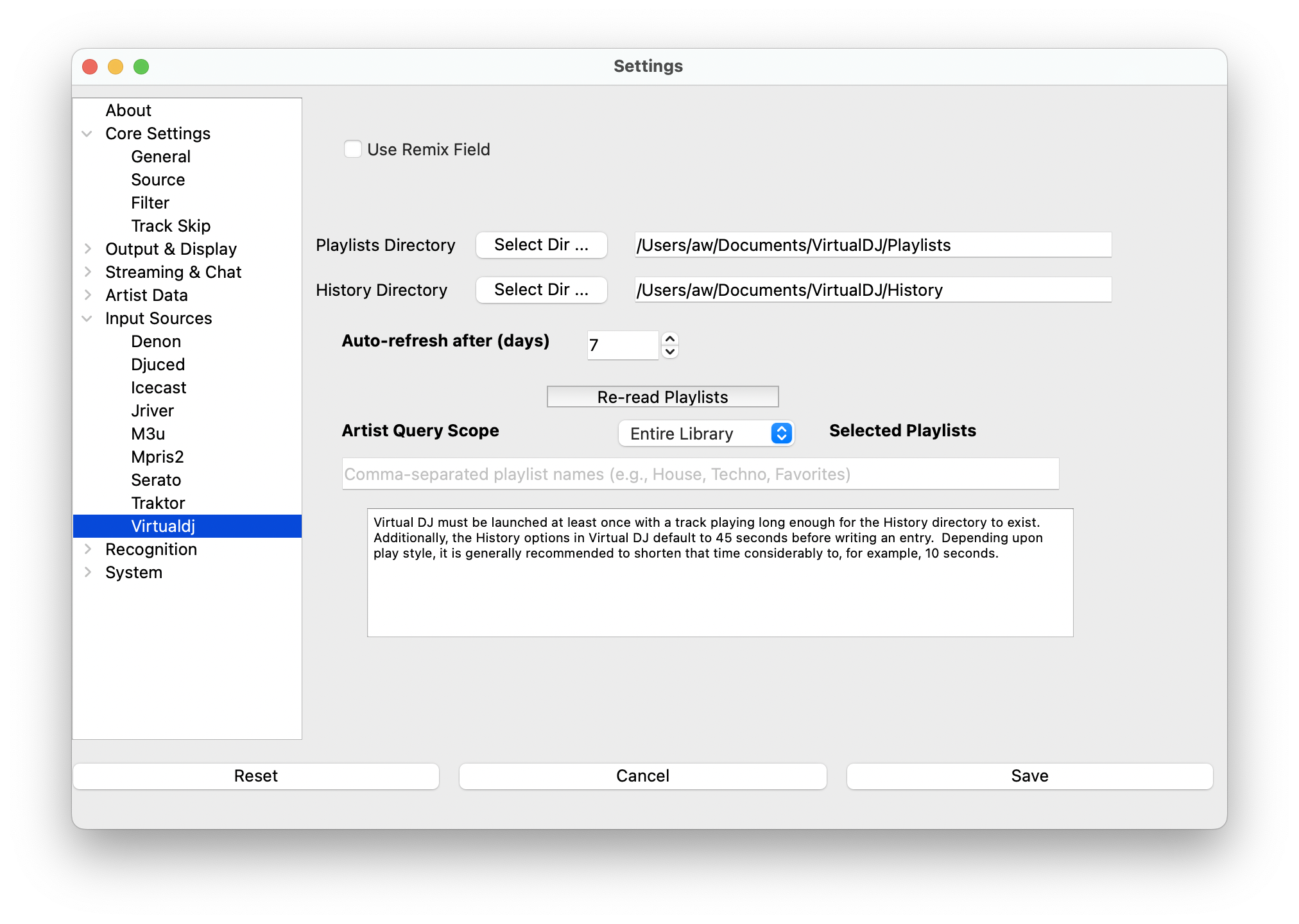 2. Playlists Directory - Usually auto-detected as Documents/VirtualDJ/Playlists