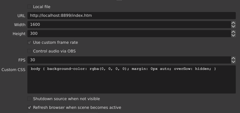 Once the webserver is enabled, hop into OBS and configure a Browser