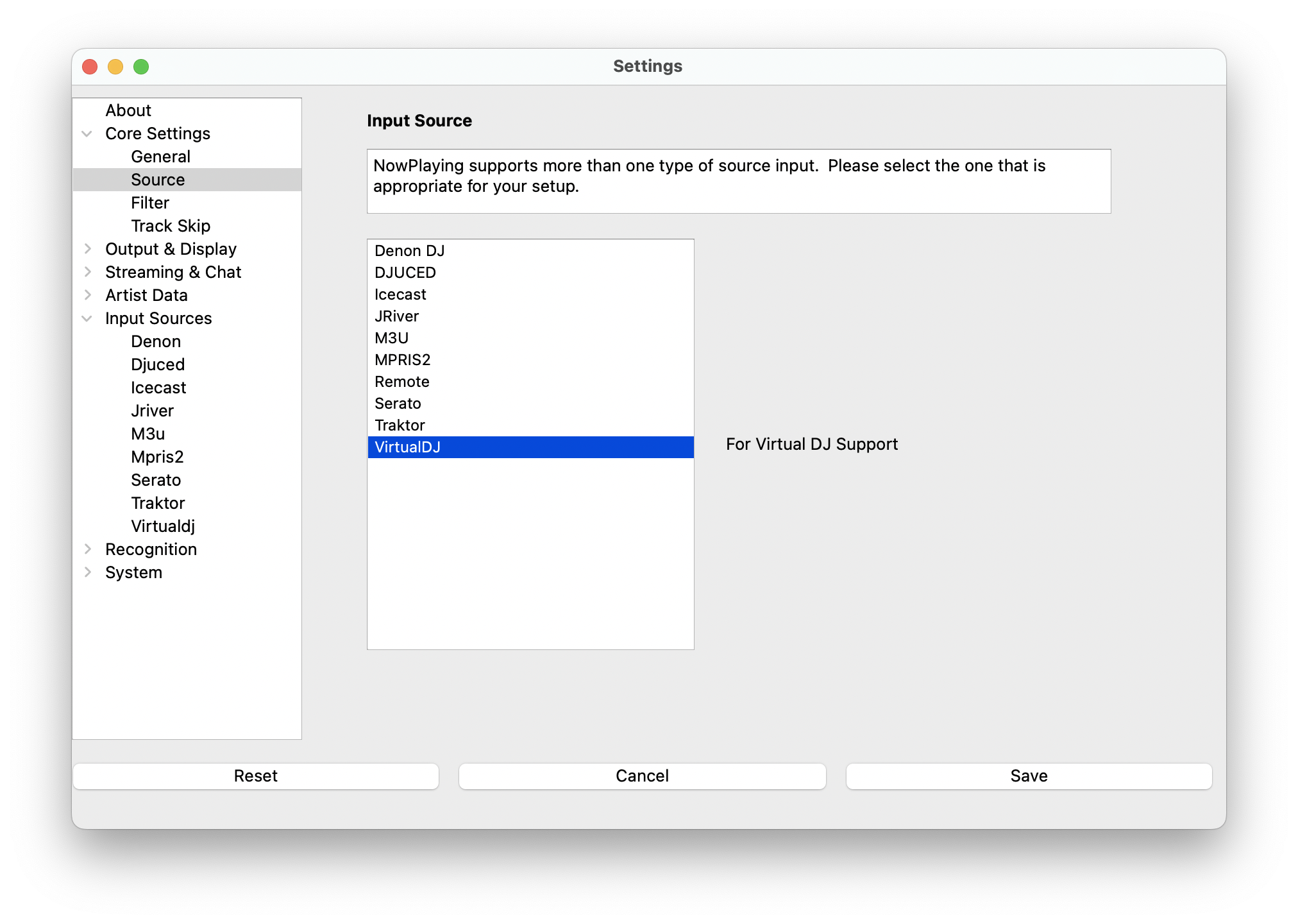 - Select Virtual DJ from the list of available input sources
