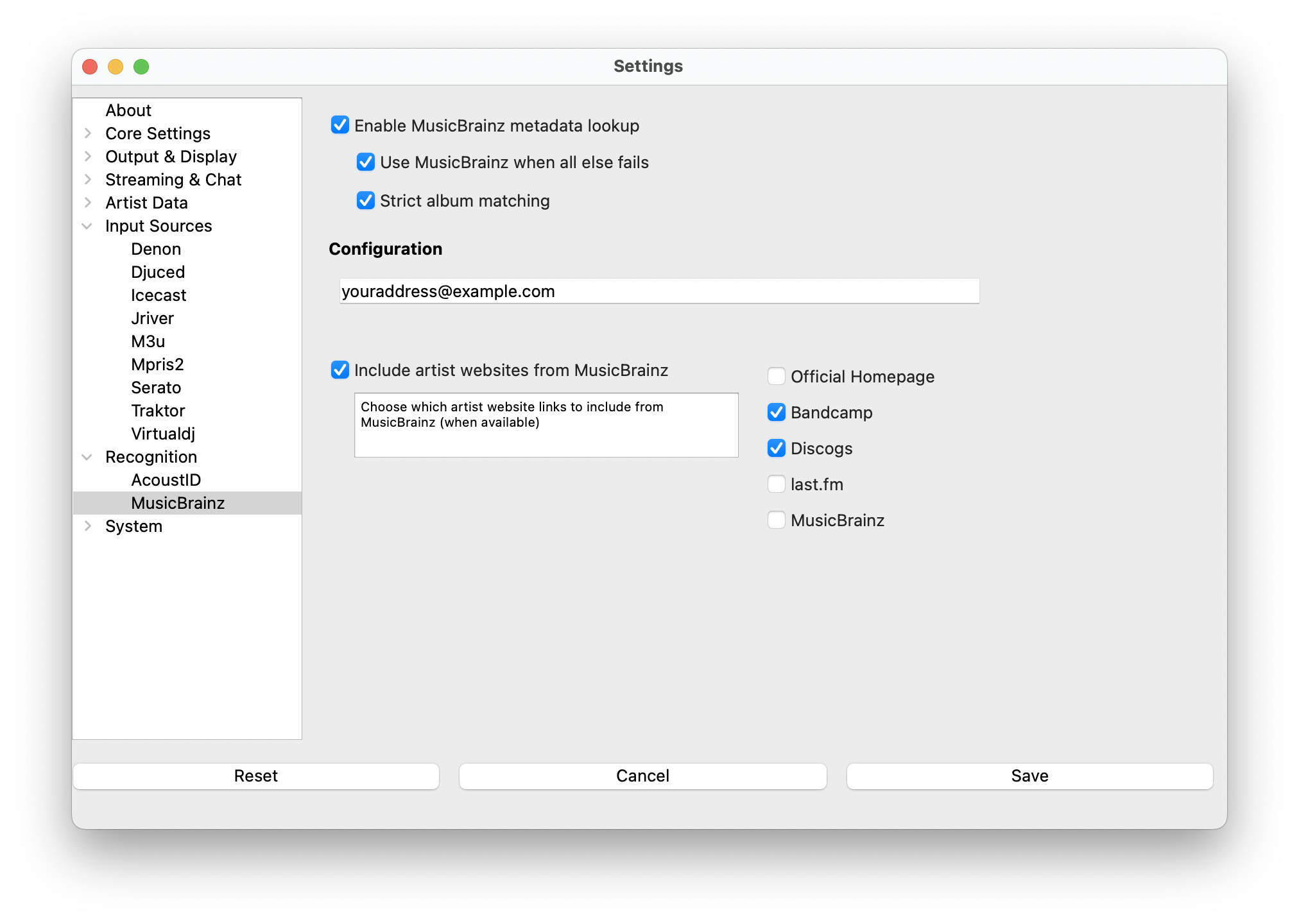 - Select Recognition->MusicBrainz from the left-hand column
