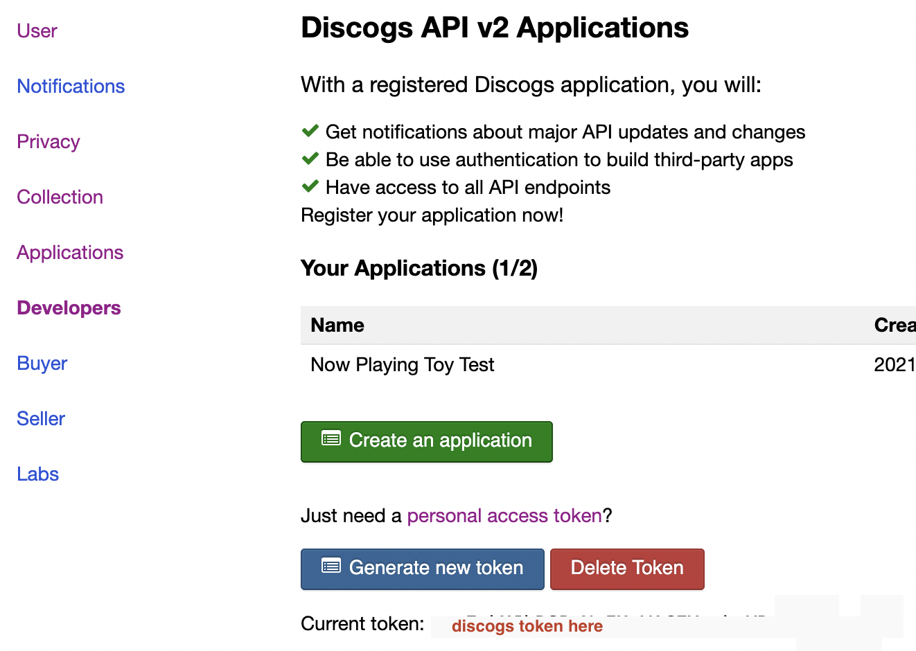 - Copy the token and paste it into the Discogs Token field in What's Now Playing