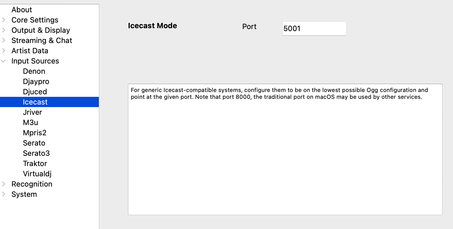- Change the Port to match the port in What's Now Playing's Iceast settings page.